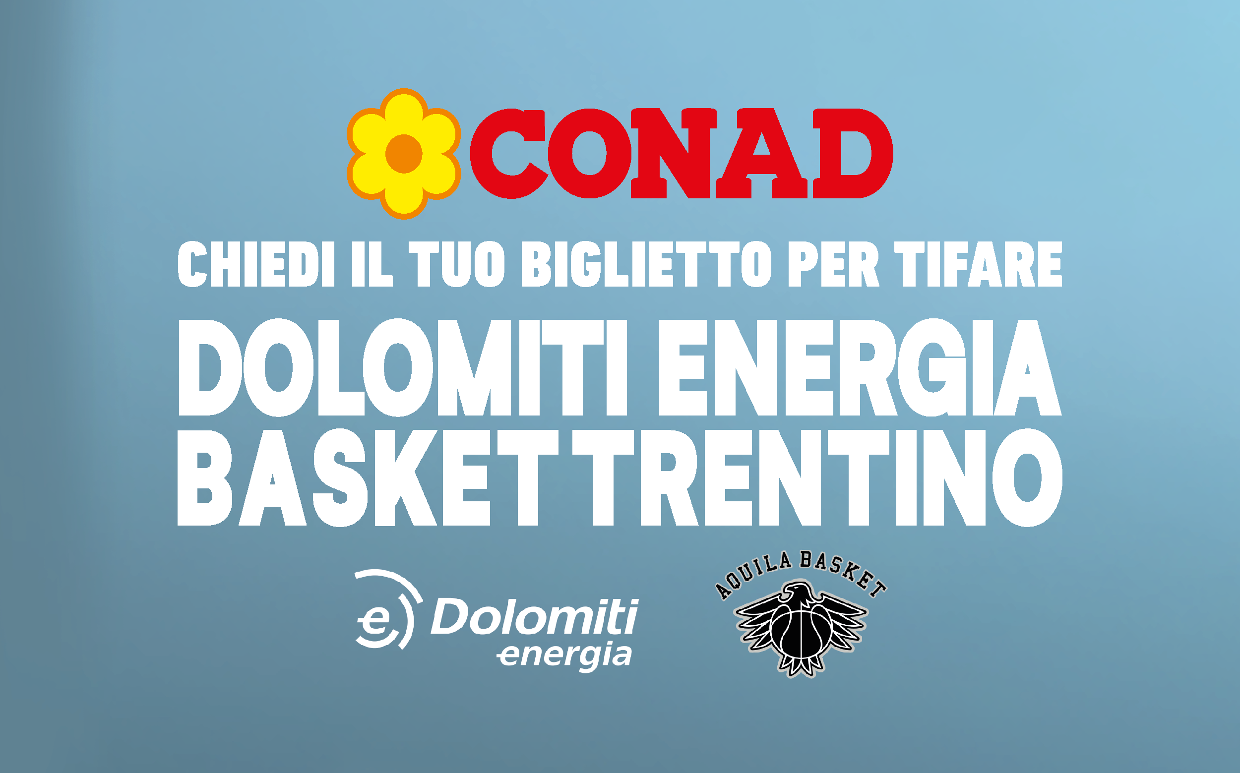 Dal 30 settembre 2025 fino al 10 maggio 2026, con una spesa di almeno 40€ nei punti vendita Conad del Trentino aderenti, potrai ricevere un coupon per l’acquisto di un biglietto di ingresso a una partita casalinga della Dolomiti Energia Basket Trentino, presso la BTS Arena, da utilizzare per le partite di LBA e EUROCUP.